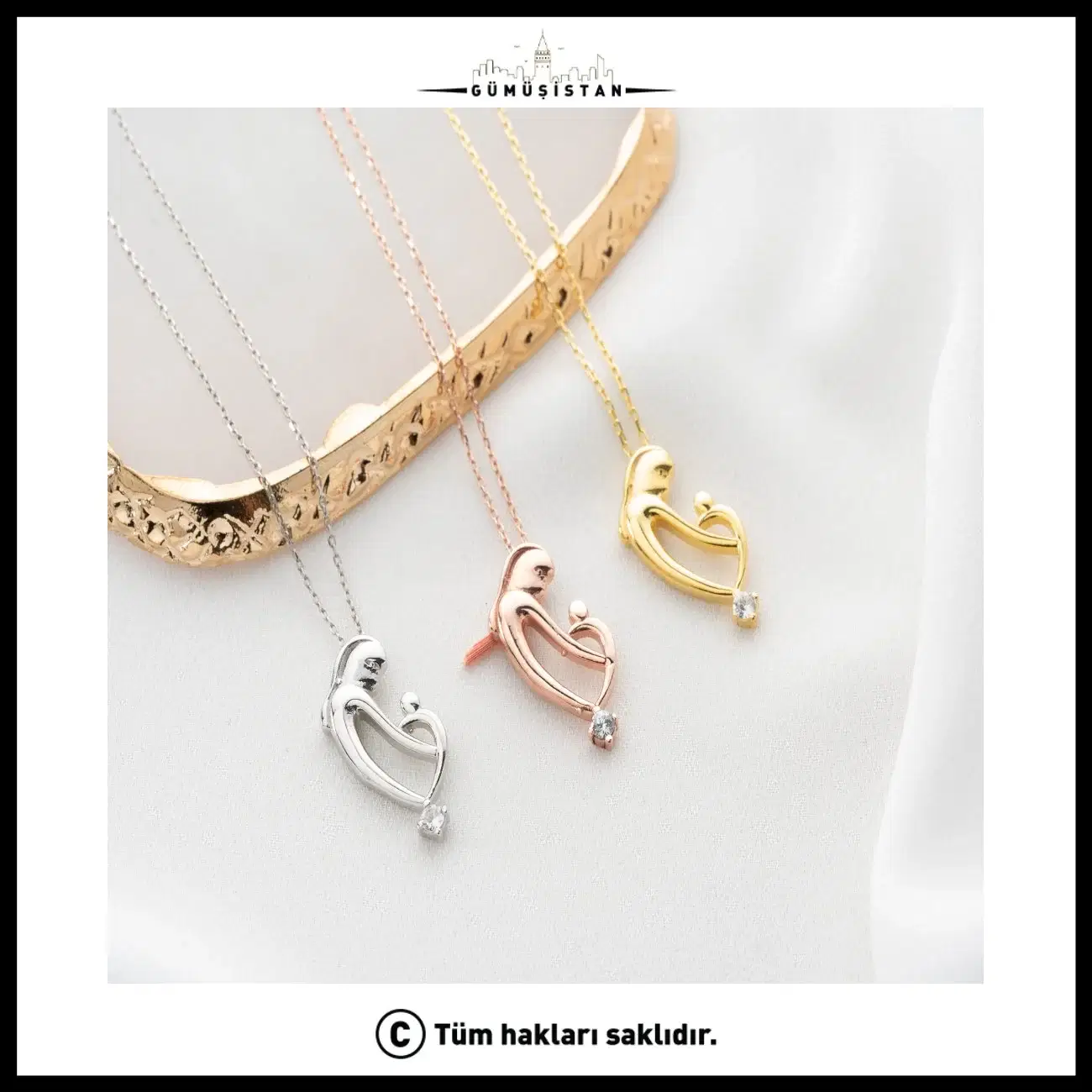 Annelere özel olarak hazırlanan anne bebek kolyemiz, yeni anne adayları için ve şıklığına düşkün anneler için tasarlandı. Anneler günün her saatinde rahatlıkla kullanabilir. Yeni anne olan yakınlarınıza Özel kalıcı ve anlamlı bir hediye arayanların en fazla tercih ettiği hediye seçenekleri arasında yer alan 925 ayar gümüş kolye modeli yeni anne olan yakınlarınıza ya da anne olan yakınlarınıza alabileceğiniz en ideal hediyeler arasındadır.