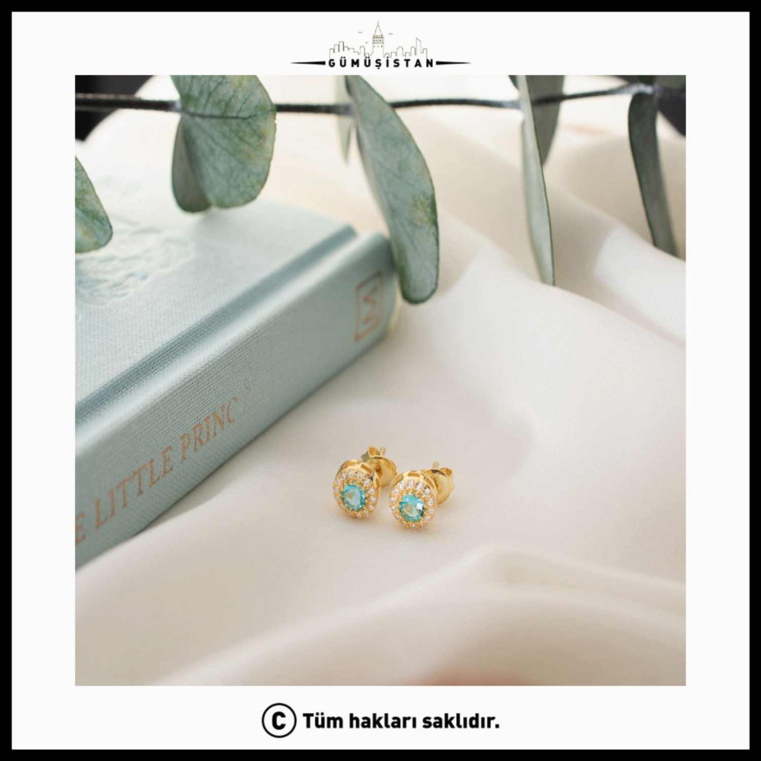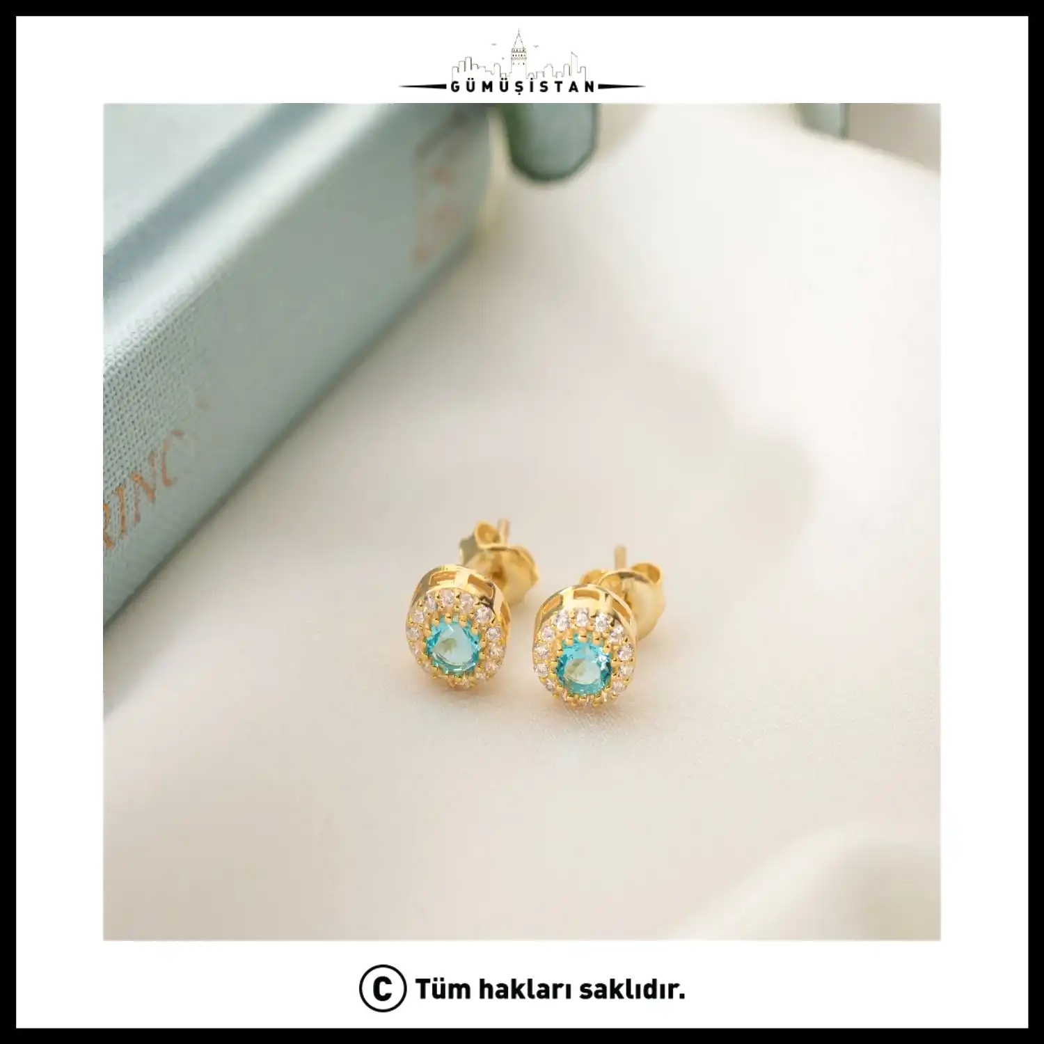 925 Ayar Gümüş Aralık Ayı Doğum Taşı ( Blue Topaz ) Küpe