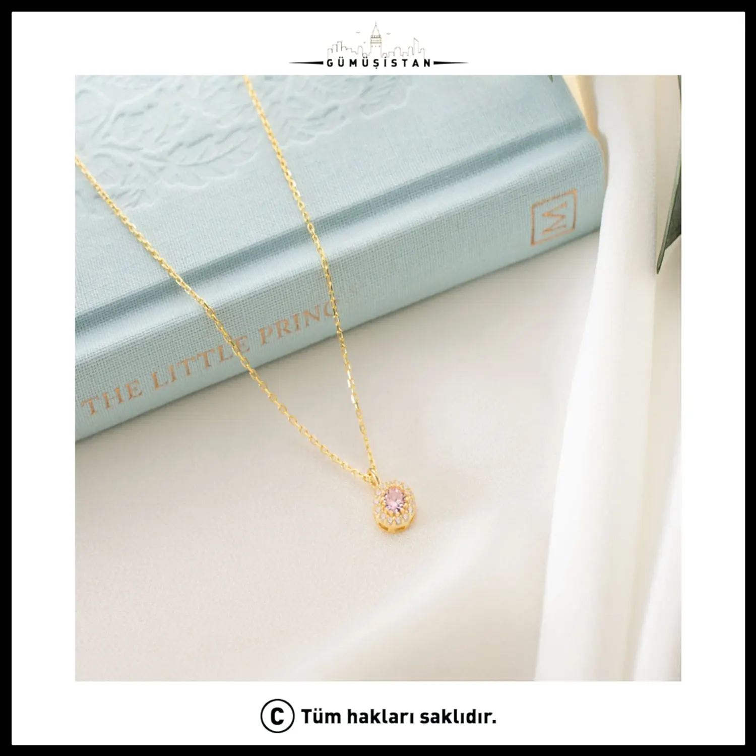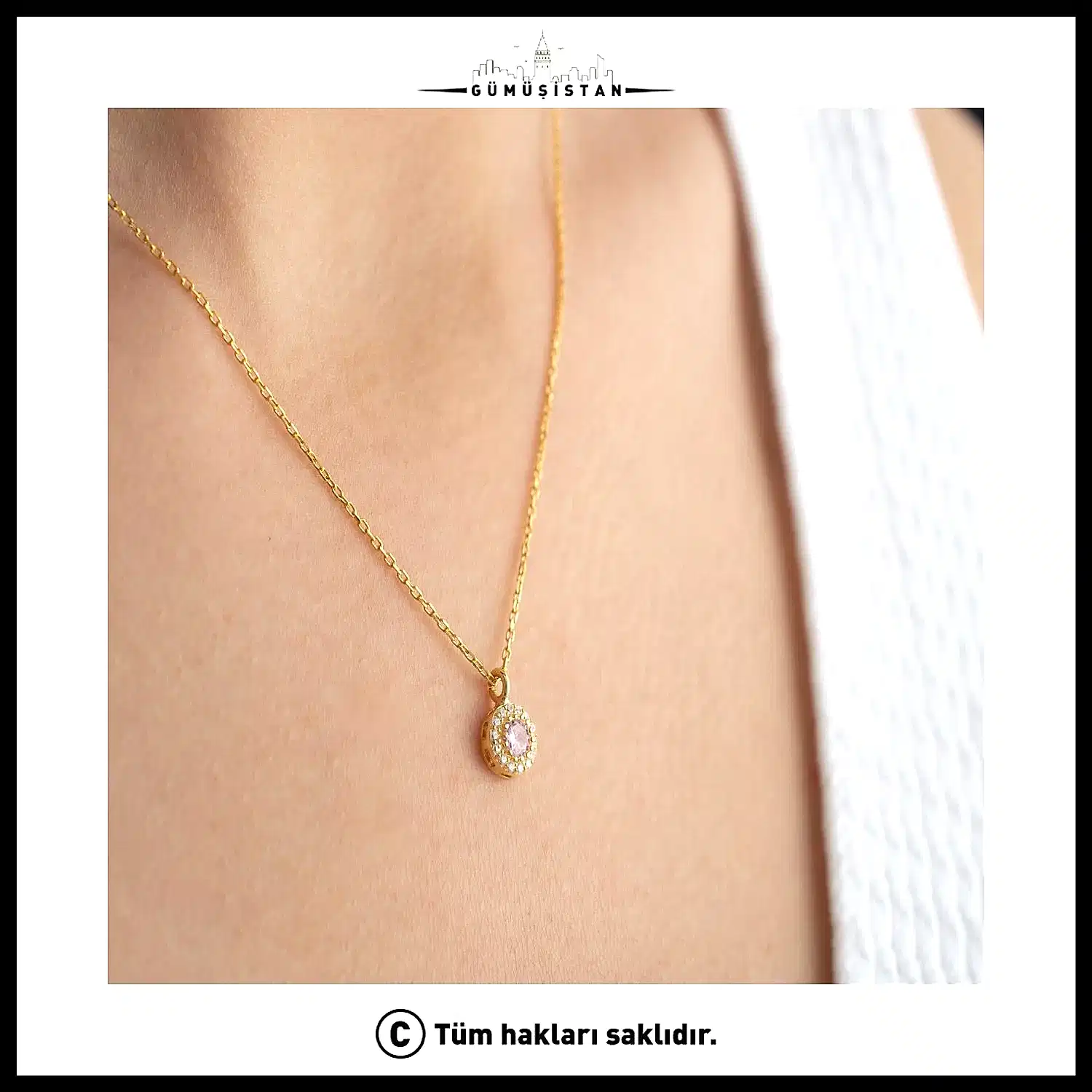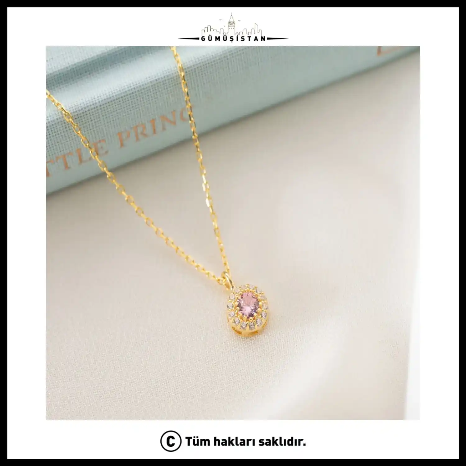 925 Ayar Gümüş Ekim Ayı Doğum Taşı ( Pink Tourmaline ) Kolye
