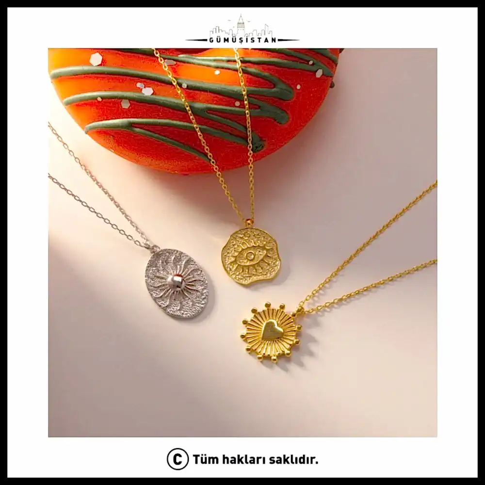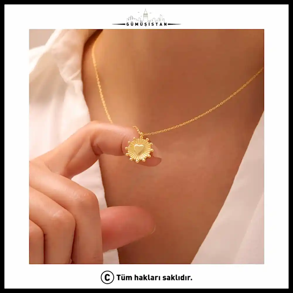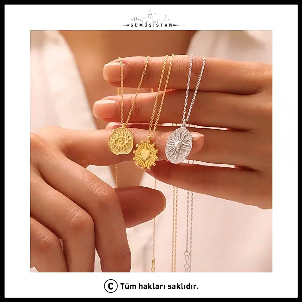 925 Ayar Gümüş Sembol Kalp Nazar Güneş Kolye