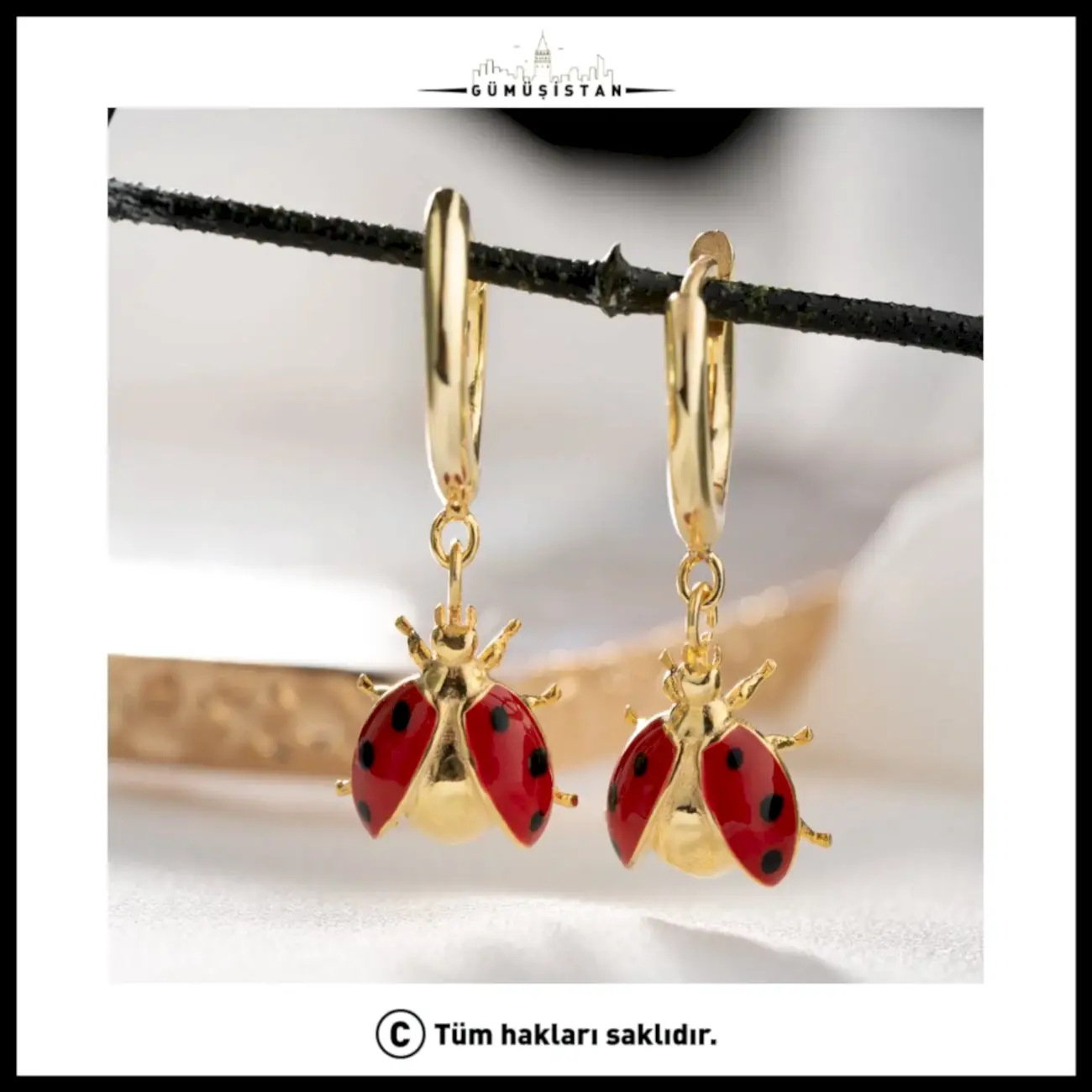 925 Ayar Gümüş Uğur Böcekli Küpe