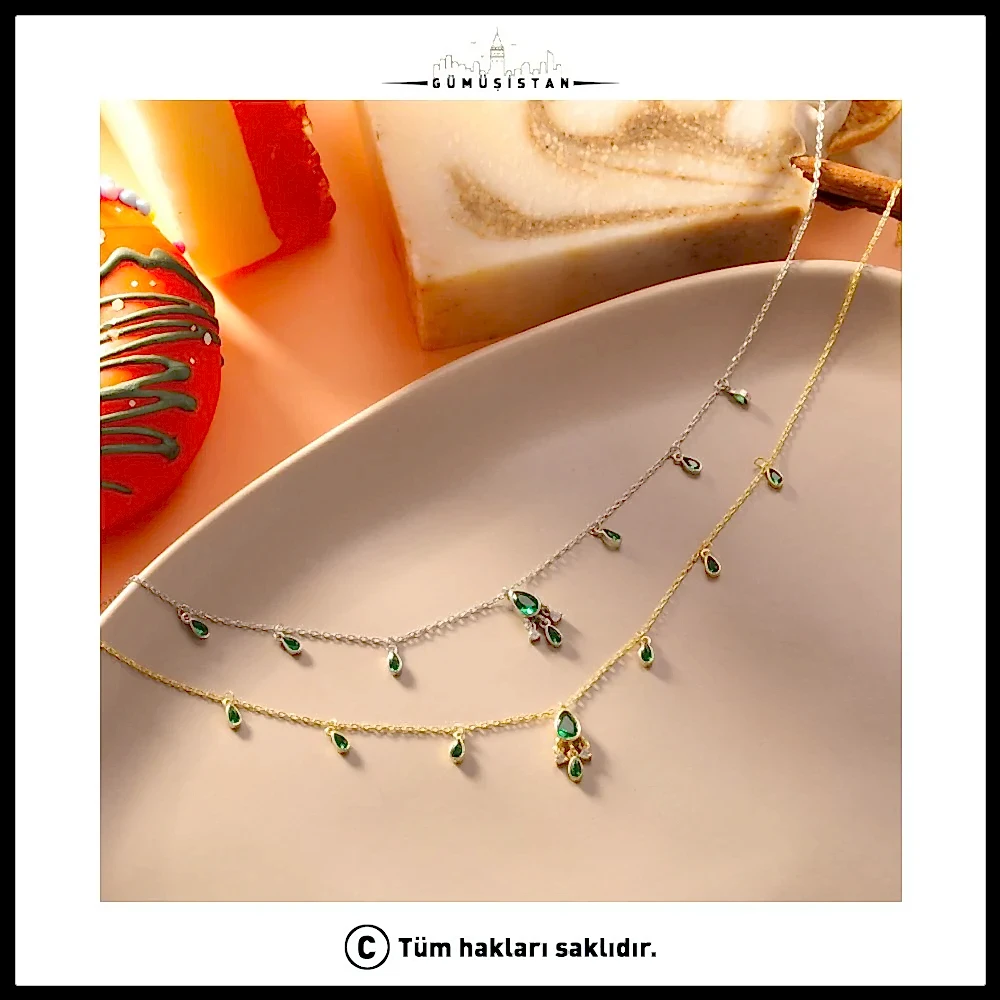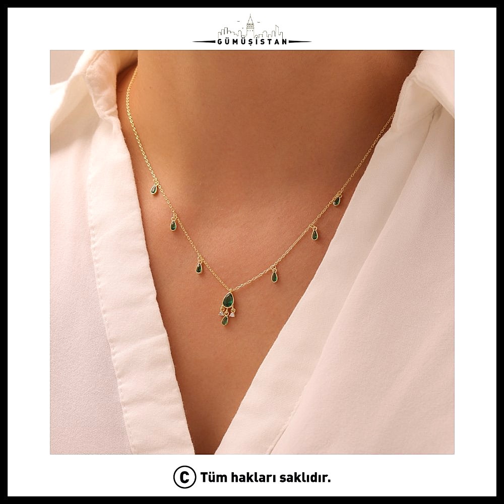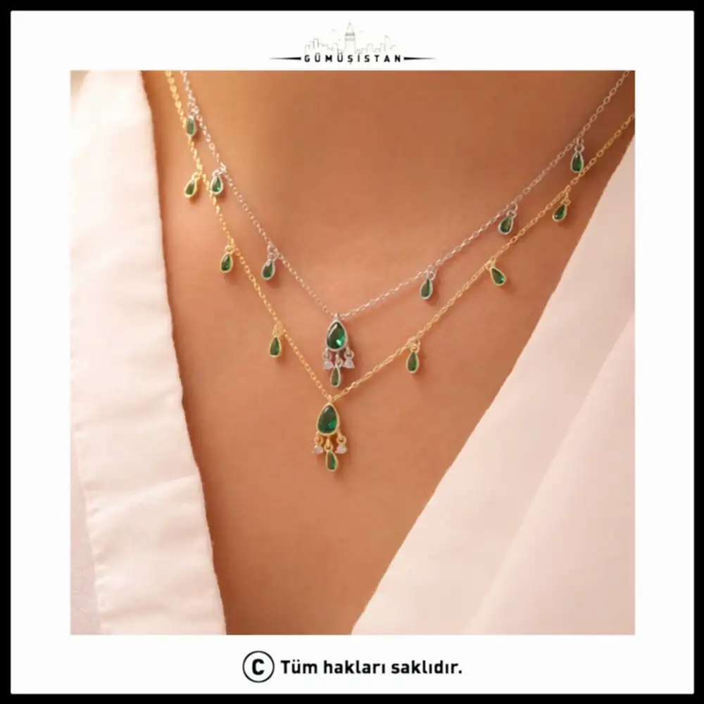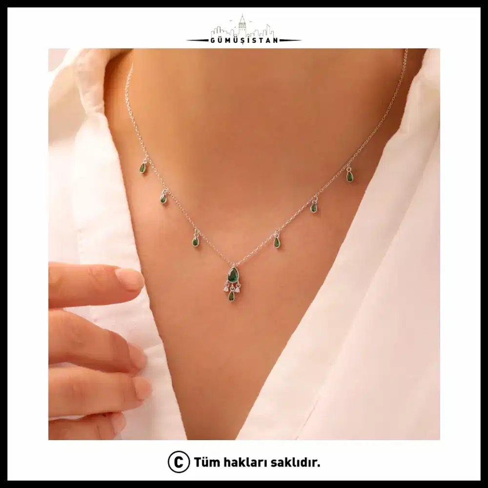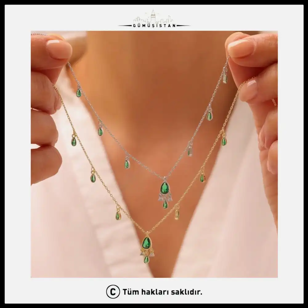 925 Ayar Gümüş Zümrüt Taşlı Salaş Kolye